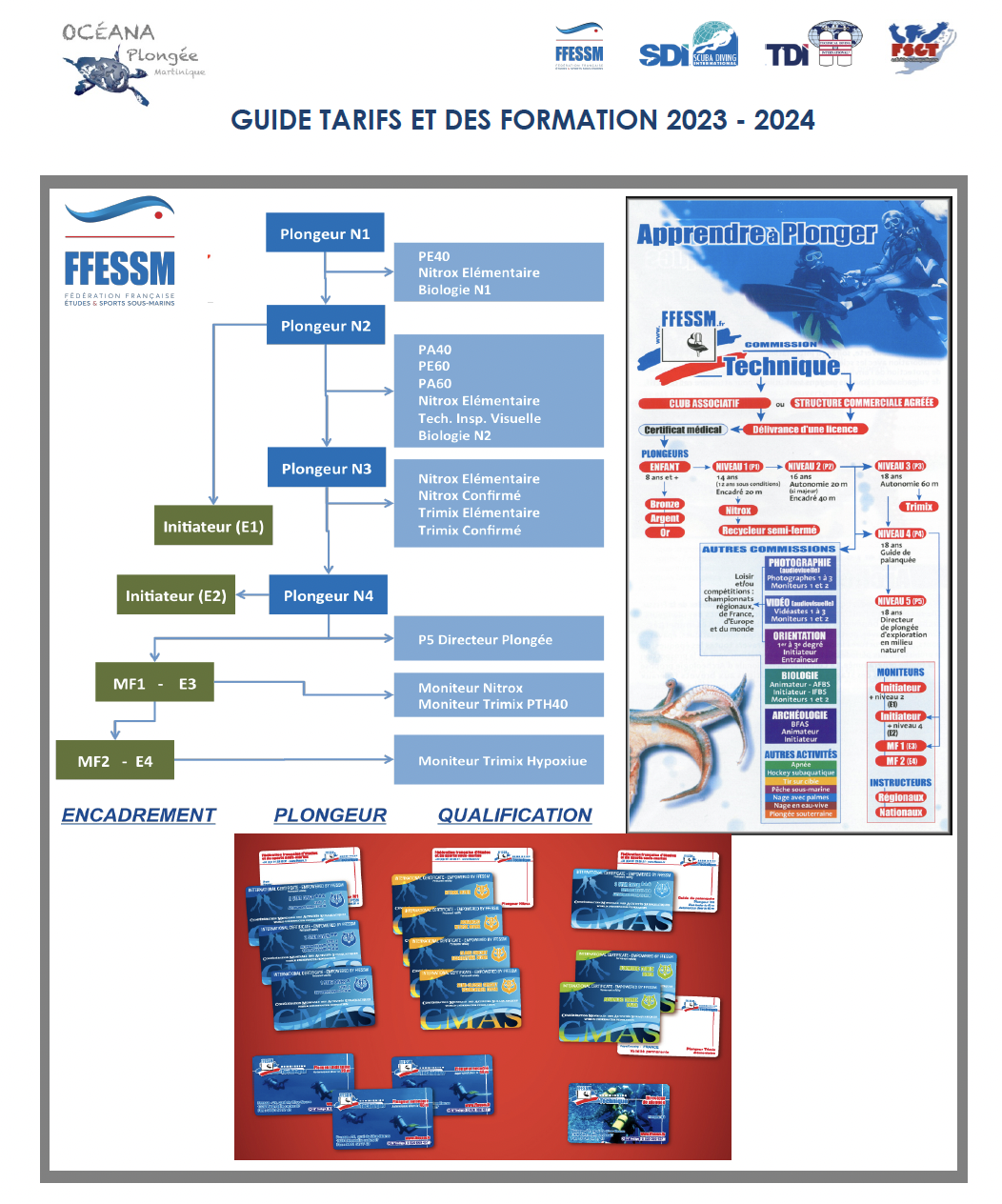Du débutant au Niveau 4 - Guide de palanquée, Accéder pour tous les niveaux aux différents manuels de formation, ci dessous le lien de la FFESSM.